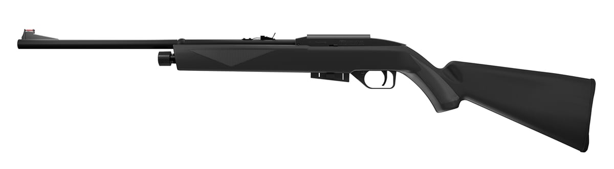 This rifle features an all-weather synthetic stock, windage-adjustable rear sights and will produce velocities up to 625 fps with CO2 power. It is semi-automatic and has a 12-shot rotary clip that holds .177 caliber pellets.
