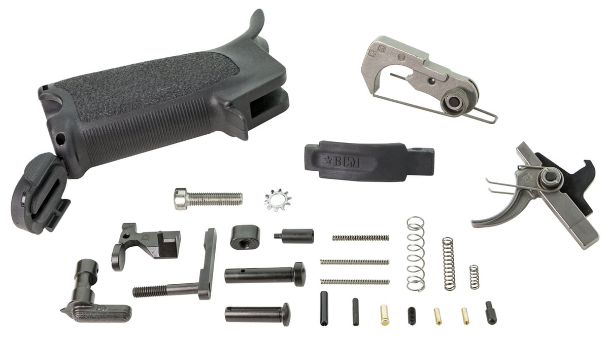 BCM Enhanced Lower Parts Kit for your AR-15 Lower Receiver. The kit includes all the Mil-Spec quality components you have come to expect from BCM, with some upgrades to include BCM PNT Trigger Assembly, BCM Pistol Grip and Mod 3 BCM Enhanced Trigger Guard.