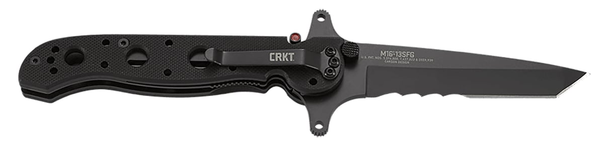 The Special Forces G10 models share a unique design offering a combination of Carson M16 Series features requested by military procurement specialists. The dual grind Tanto blades were specified because they offer maximum strength. The open build allows two Carson Flippers to be incorporated, resulting in a true hilt. The M16-13SFG Slim Profile G10 features a 3.50" dual grind Tanto blade and is ideal when weight and bulk must be kept to a minimum. Blade, frame and hardware are non-reflective tactical black. The blade receives a black titanium nitride coating for maximum corrosion resistance. Kit's trademark dual checkered thumb studs are standard. The knives in this series are equipped with clip options that allow four-position carry on belts or webbing. *Note- these knives are not designed for tip-up in-pocket carry. They are special knives, designed by the military for special forces use.