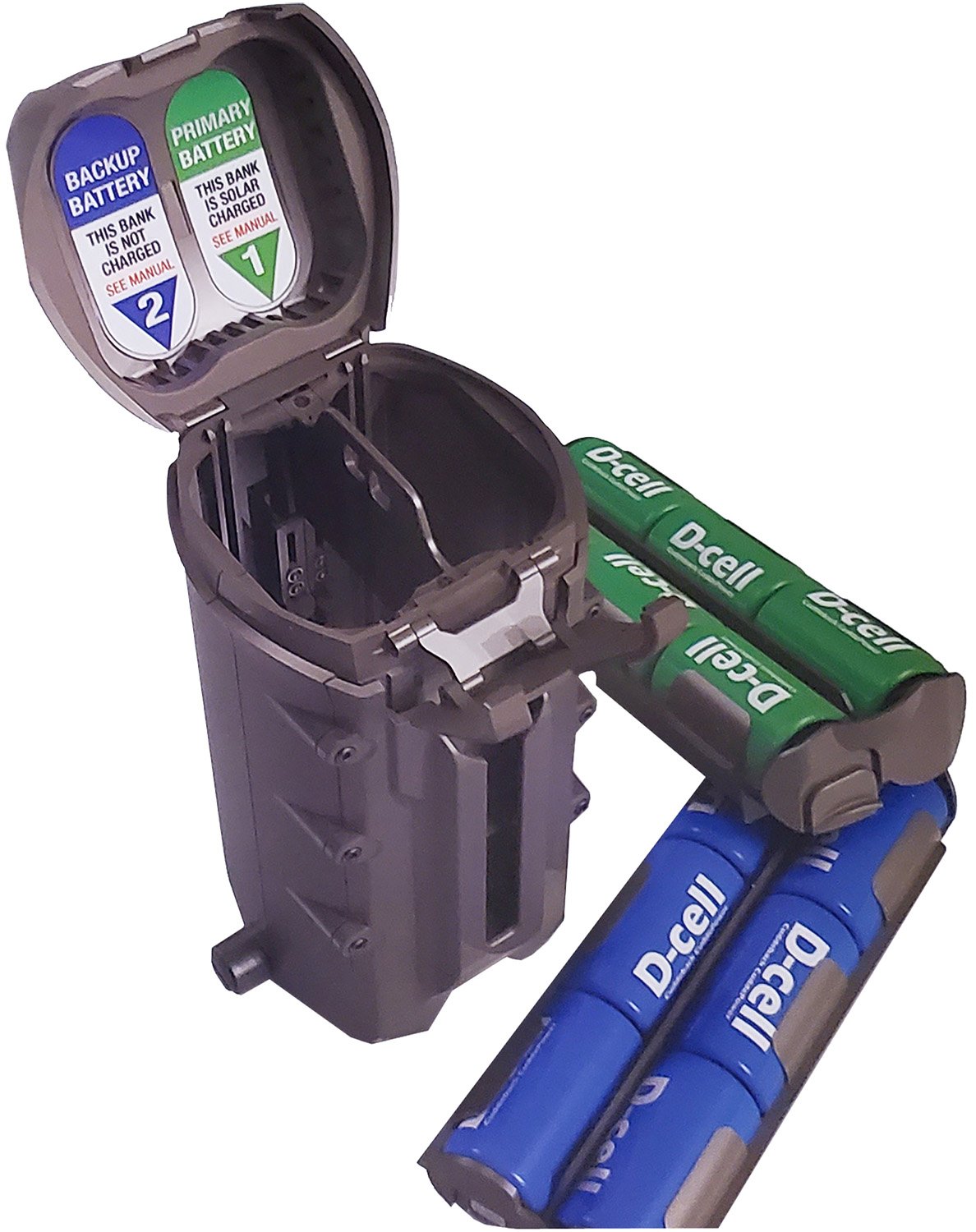 A quality D battery has eight times the capacity (milliamp hours) of a comparable AA battery. This allows the 12 D batteries in the Power Bank to have up to four times the power of the eight AA batteries in the camera. More power enables the camera to run longer and take higher quality night images. This is critical in subfreezing temperatures.