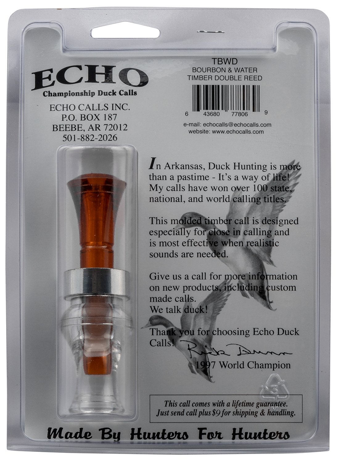 Echo Calls 77806 Timber Bourbon & Water Double Reed Mallard Sounds Attracts Ducks Brown/Clear Polycarbonate