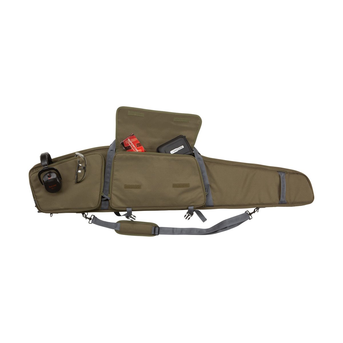 The Garrison rifle case in OD Green is the ultimate 55-inch performance soft rifle case. Features heavy-duty foam, reinforced stitching, and oversized pockets for all your gear. The interior of the case is made from 600 Denier Polyester along with an adjustable strap to keep your rifle stable while in the case. With its longer length, it is the perfect case for longer precision rifles and the heavy-duty stitching will hold all your gear securely.