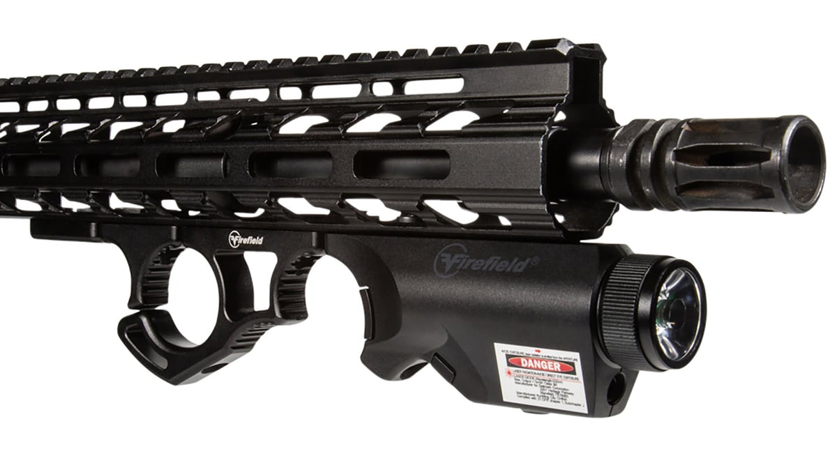 Firefields Rival XL Foregrip and Flashlight combination is the perfect addition to any M-LOK styled AR rail. The foregrip is compact, lightweight and features durable composite and metal construction with a matte-black finish. The integrated 5mW red laser/flashlight emits powerful illumination with 300 yard nighttime/20 yard daytime visibility. Features ambidextrous digital switch; windage and elevation adjustable and utilizes the MLOK system for mounting. Includes battery and adjustment tool.