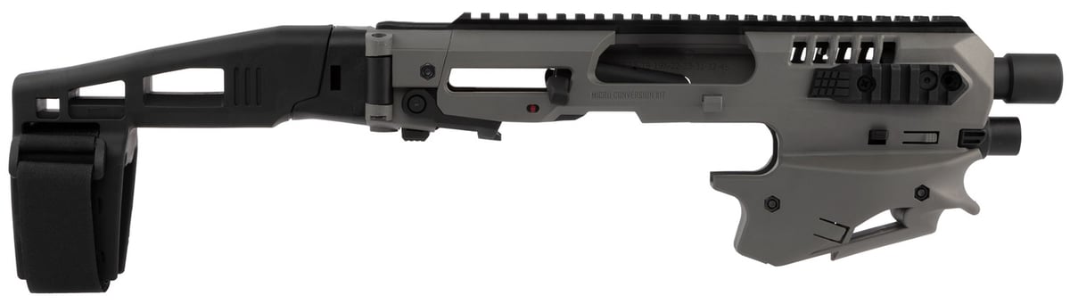This Micro Conversion Kit is a lightweight and sturdy platform for Glock handguns, turning it into the ultimate Glock Conversion Kit. It has a barrel shroud made of aluminum with a polymer body. Compatible with Glock 17/19/19x/22/23/31/32/45