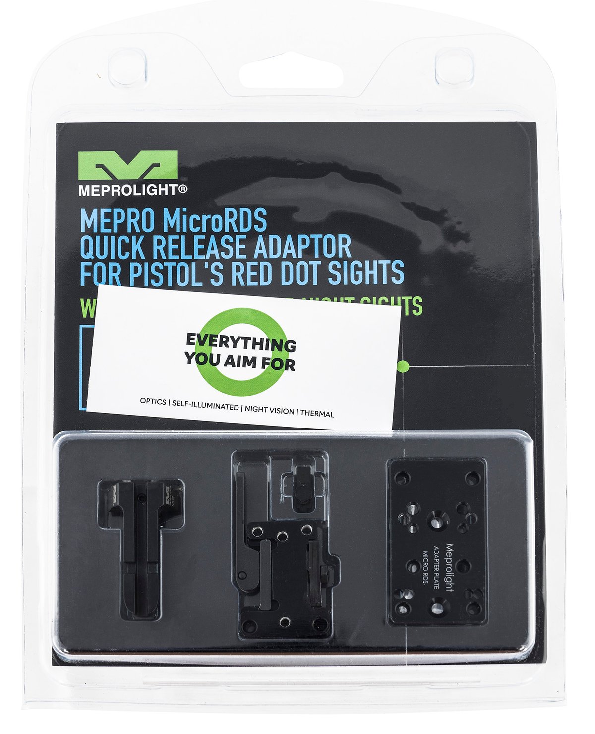 Meprolights quick-detach (QD) adaptor Kit utilizes the existing rear dovetail slot for sights to mount the adaptor to hold the Meprolight MicroRDS or any other red dot optic on the market. Now almost every pistol can use a red dot optic without the need to drill and tap mounting holes on barrels or slides. The adaptor mounts directly to a Meprolight TruDot, self-illuminated sight which also functions as a back-up sight should the shooter want to remove the red dot optic. Designed as a primary pistol optic; it can also serve as a backup or a secondary CQB sight on rifles and shotguns.
