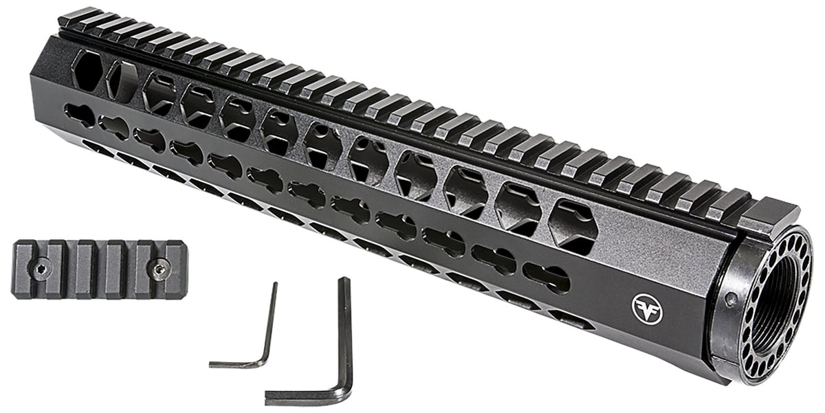 The Firefield Edge 12 Keymod Rail merges an aggressive handguard design with an accessory attachment system robust enough to handle every piece of equipment you need on your next mission. This multipurpose handguard and rail system boasts lightweight yet heavy-duty aircraft-grade 6061-T6 hard-anodized matte black aluminum and a precision-machined, skeletonized design. True to Firefield's mantra, Victory justifies everything, the Firefield Edge 12 Rail includes enough keymod system space to mount just that everything, including your suppressor.