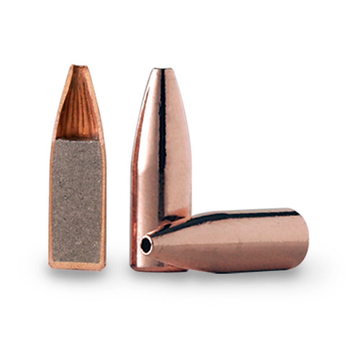 Originally developed for military applications, the lead-free Varmint Grenade delivers sniper-like accuracy for dependable long-range kills. The hollow-cavity, flat-base bullet features a copper-tin powdered metal core surrounded by a gilding metal jacket. The bullet remains intact at ultra-high velocities in fast twist barrels, while its highly frangible core fragments violently on impact, virtually vaporizing ground squirrels and prairie dogs, even at long range. Varmint Grenades instantly expend their energy, seldom exiting large predators like bobcats and coyotes, leaving valuable pelts virtually undamaged. Because of the Varmint Grenade's construction, it produces the best accuracy results when seated off the lands and grooves .020".