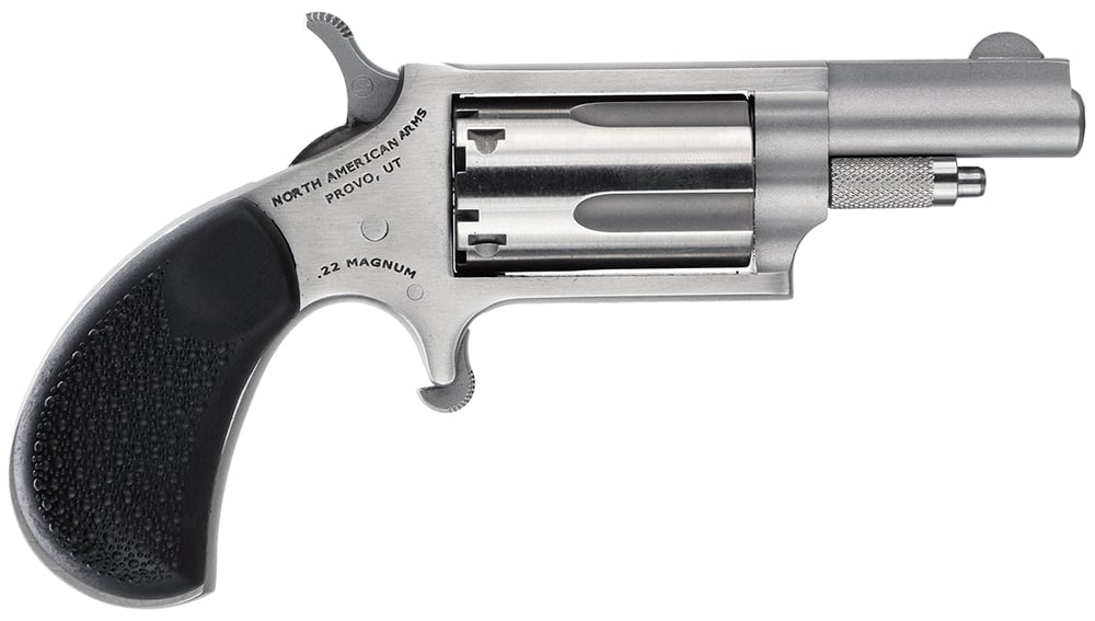 North American Arms 22MGRCHSS Mini-Revolver Carry Combo Sports South Exclusive 22 WMR 5 Shot 1.63" Stainless Steel Barrel, Frame & Cylinder, Black Rubber Grip, Exposed Hammer, Side Carry Holster