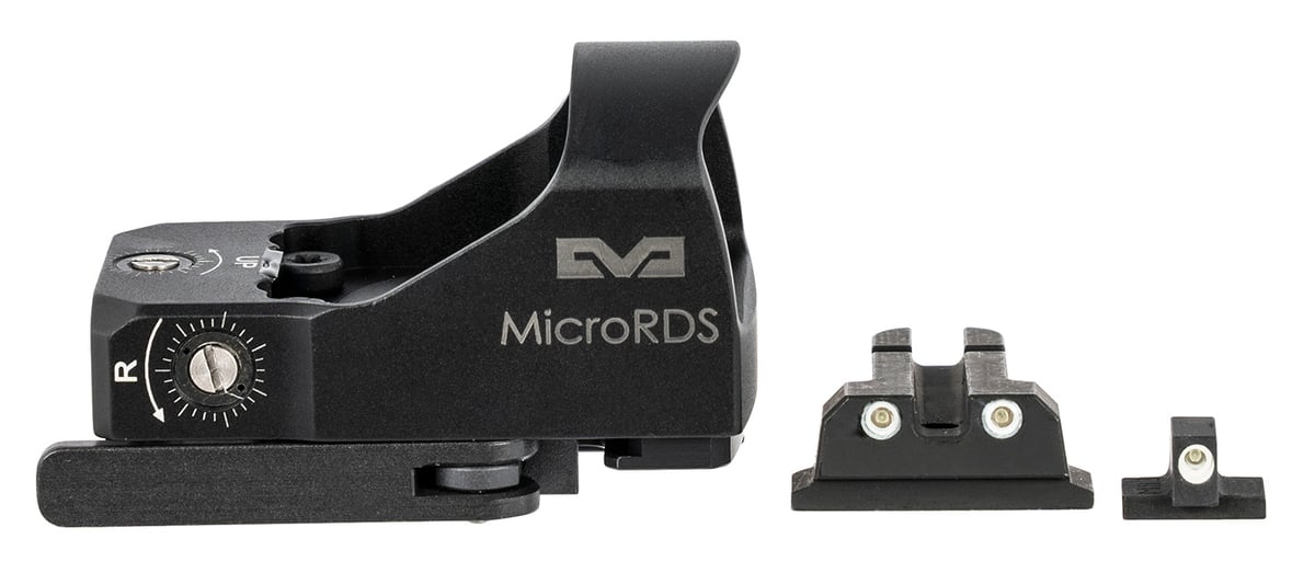 The quickest, easiest upgrade in the history of accuracy. The Mepro microRDS brings the rapid target acquisition of a full-size red dot rifle optic to a compact pistol sight. Featuring a patented quick-detach (QD) adaptor kit that easily mounts using the pistols existing rear sight dovetail slot; no drilling, tapping or need for a gunsmith. Its the only red-dot solution that instantly mounts and dismounts without having to re-zero, with an adaptor that also gives you a Meprolight TruDot self-illuminated sight as a back-up when the red dot optic is removed. Built to mount in minutes to any pistol with red dot capability. It also serves as an excellent close-quarters red dot sight and backup sight for rifles and shotguns. Option 1- Full Kit Mepro microRDS Red Dot Sight. Quick Detach Adaptor. Backup Self-illuminated Night Sight Set.