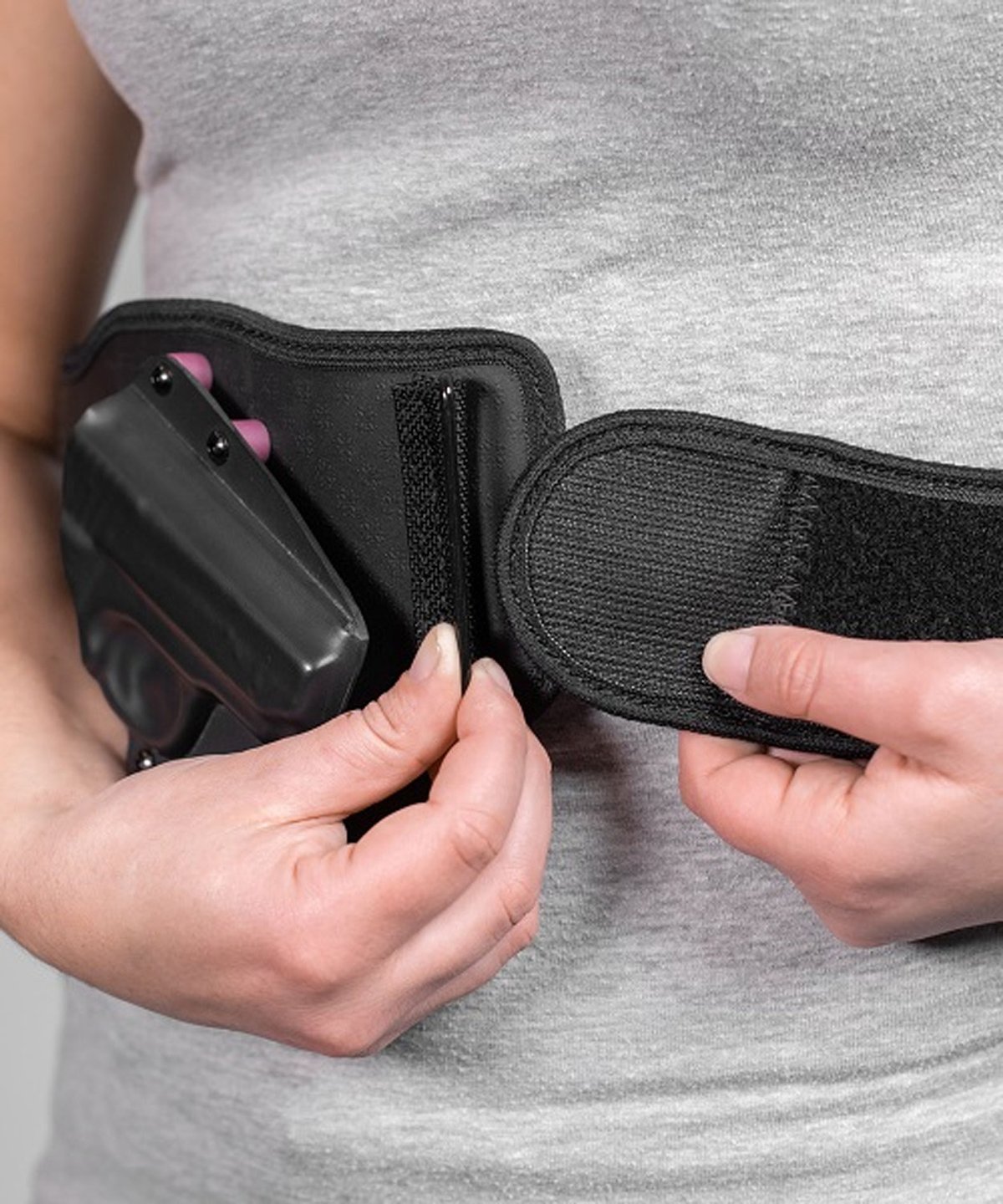 Belly band holsters for concealed carry are made for when carrying with a belt is just not feasible or practical. It's also ideal for use under active wear. The position of the holster itself also makes for a more natural, intuitive draw.The elastic belly band holster strap stretches to more naturally but also to hold tight. It can be positioned higher or lower on the body as desired. The strap is also padded with ventilated neoprene, which breathes against the skin and wicks away moisture. The strap of this belly band gun holster is reinforced with a strip of spring steel.