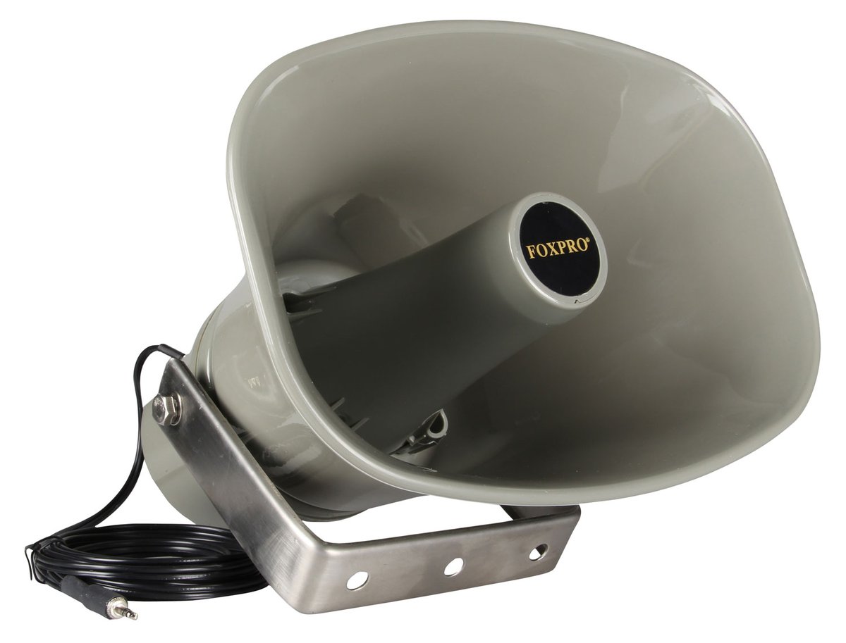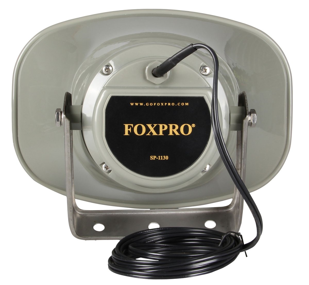 The FOXPRO SP-70 (30W, 8-ohm) external speaker connects to any FOXPRO game call that features a 3.5mm external speaker jack. Includes a 12ft cable with a 3.5mm plug.
