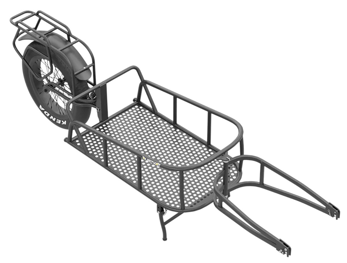 QuietKats Single-Wheel All-Terrain Cargo Trailer is a convenient and versatile solution for carrying heavy loads. The trailer handles a 100-pound load capacity in a compact 14" x 24" space. The single 20" x 4" tire makes it a seamless fit with any QuietKat hardtail eBike. The sleek design and rear suspension allow for extra stability, letting bikers carry oversized loads over all kinds of terrain. The fully redesigned cargo trailer features a quick-connect system. The Single-Wheel All-Terrain Cargo Trailer attaches to QuietKat full-suspension models and other electric bike brands with the additional purchase of a BOB Axle. QuietKats Single-Wheel Trailer includes a new dual-post kickstand, it'll keep your rig steady even when fully loaded down. It also includes a solid mesh cargo liner to keep everything safe and secure in transport.