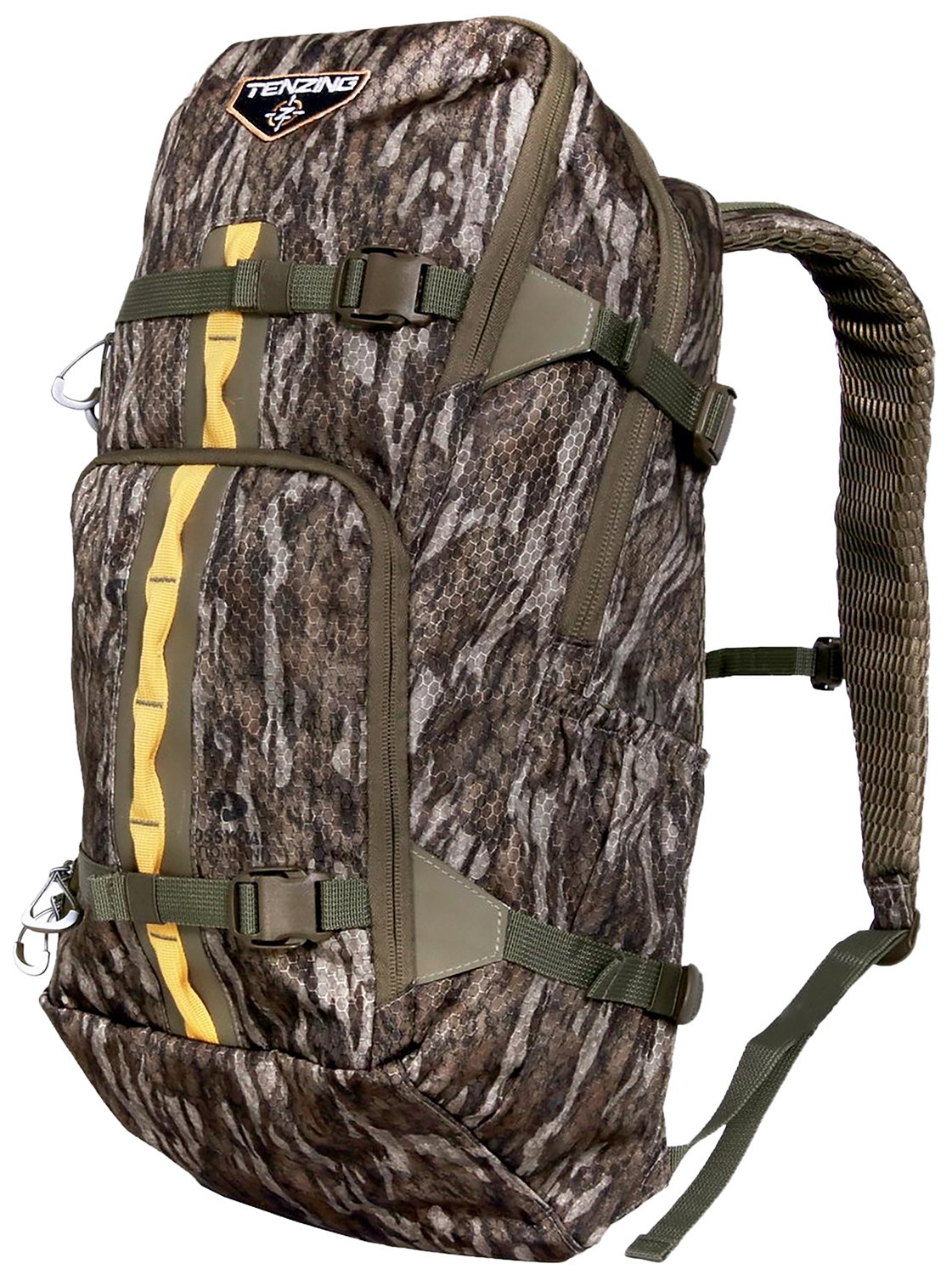 The Tenzing 1200 Bag boasts a burr-proof 300-denier ripstop Honeycomb Poly Oxford outer shell outfitted in Mossy Oak Bottomland camo allowing it to blend perfectly into the hardwoods. Inside the 1200-cubic-inch main compartment you’ll find ample storage space including five open-top grab pockets two zippered pockets and fold-down gear organizer. Plus it features two exterior zippered pockets two expandable side pockets with adjustable compression straps and trademarked Daisy Chain customization for attaching additional gear. Pair that storage space with its hydration bladder compatibility and you’ve got a pack that does more than just see you through this season—you’ve got one that has your back for years to come.