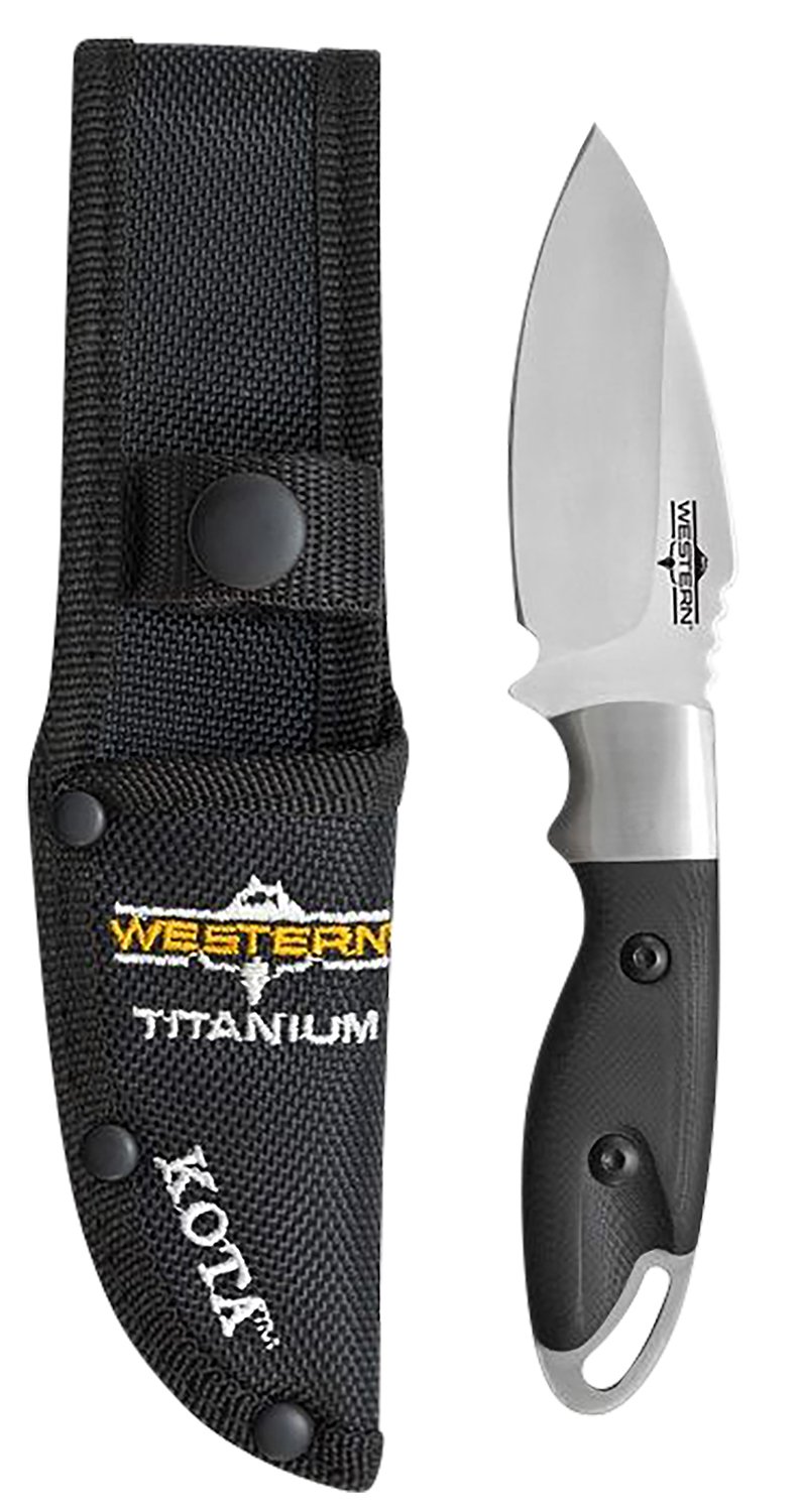 Camillus 19202 Western Kota 3.25" Fixed Plain Silver 420 Steel Titanium Bonded Blade, Black G10 Handle, Includes Sheath
