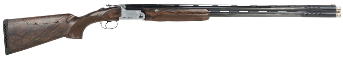 Nickel receiver with black script FX wood with adjustbale comb ventilated midrib and buttplate black lever and hinge pins ported barrels ABS case fiber optic front sight midbead