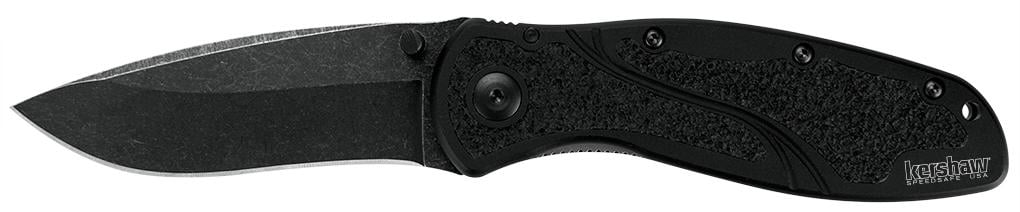 Kershaw Blur, 3.4" Folding Knife/Assisted, Drop Point, Plain Edge, Anodized Aluminum Frame, BlackWash Finish, with Thumb Stud/Pocket Clip 1670BW