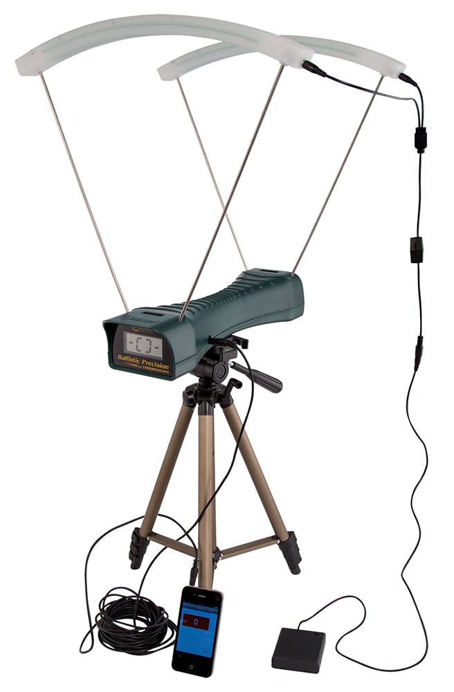Caldwell Ballistic Precision Chronograph Premium Kit Contains everything you need to capture reliable velocity data in one convenient kit. Includes Chronograph IR LED Light Kit Tripod and Custom Carry Case that conveniently holds all items. The Ballistic Precision Chronograph provides accurate velocity measurements across a wide range of shooting conditions. Higher accuracy was achieved by using a high speed 48 MHz processor and by designing a circuit with an advanced data interface that allows each unit to be computer calibrated at the factory after assembly.