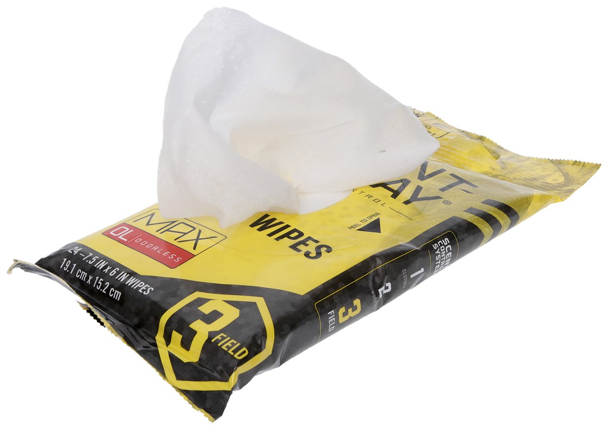 Scent-A-Way MAX Field Wipes feature aloe vera and vitamin E to prevent skin tightness drying and stinging. They’re alcohol-free and have a proprietary enzymatic odor elimination formulation to attack and eliminate human and environmental odors in seconds. Scent-A-Way Max Field Wipes are fragrance-free environmentally friendly and ideal for sensitive skin.