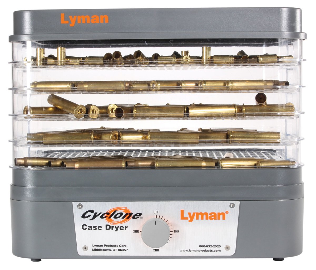 The perfect companion to any Ultrasonic or Rotary cleaning system. No longer will it be necessary to have to wait days for your brass to air dry. The forced heated air circulation of the Cyclone will dry your brass inside and out within an hour or two, with no unsightly water spots. The individual trays can keep your different caliber cases separate. Additionally, the dryer can also be used for gun parts that have been ultrasonically cleaned. It can hold up to 1,000 - 223 cases or 2,000 - 9mm cases.