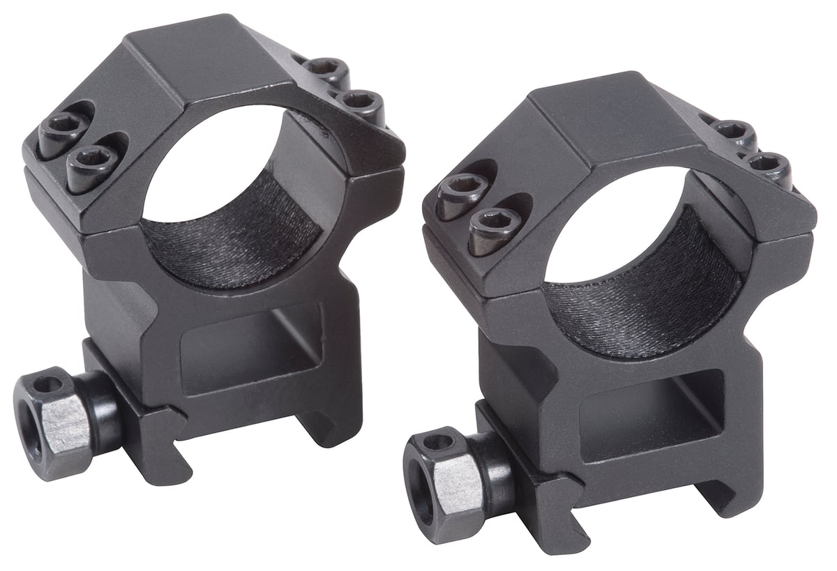 Traditions• Tactical rings work on flattop AR platforms and are extremely sturdy. The oversized hex nut ring bases and hardware provide rock solid attachment to your mounting platform. The extra-wide ring design helps to securely hold your scope in place and offers maximum hold in a lower profile ideal for hunting rifles. Four screw 1 High height matte black