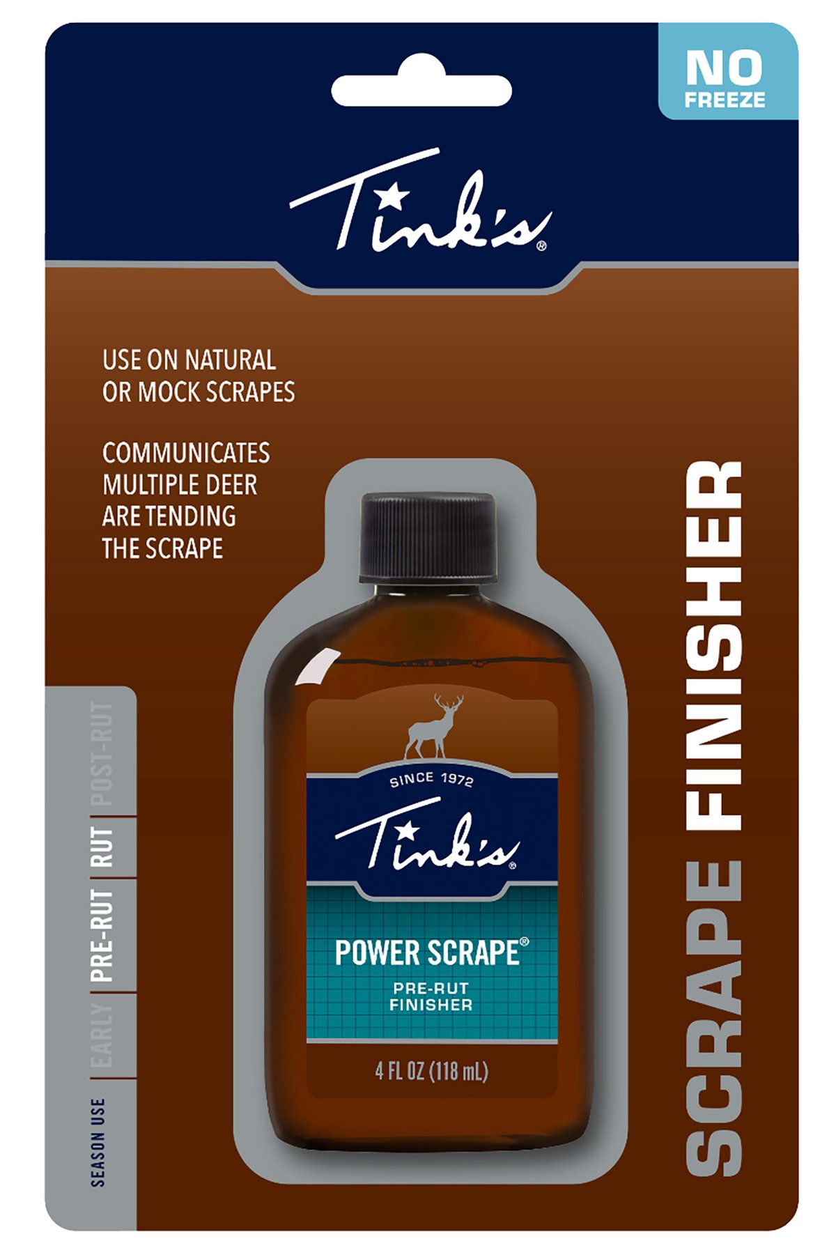 Finish off primary scrapes in your area just before the rut with Tinks Power Scrape Pre-Rut Finisher. Features our original Power Scrape formula enhanced with Tinks #69 Doe-In-Rut and buck secretions for a scent that wont be ignored. ORIGINAL POWER SCRAPE FORMULA: Enhanced with Tinks #69 Doe-In-Rut Estrous and Buck Secretions. CREATE YOUR OWN HOT SPOT: Condition bucks to revisit time and again. USE ON NATURAL OR MOCK SCRAPES: Formulated to smell like an invader buck. PRE-RUT FINISHER: Helps trigger rutting behavior and kickstart your season. SIZE: 4 Ounces
